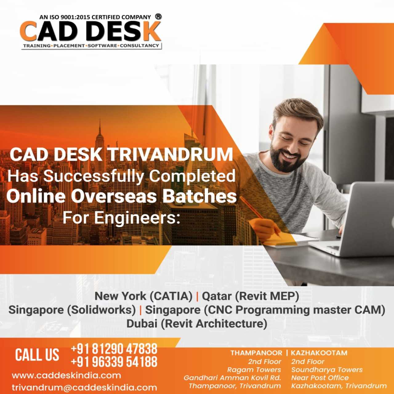 Over a decade, CAD DESK has established an enviable record of quality and accomplishment in the field of CAD, CAM & CAE. Since our inception, CAD DESK has attained a reputation for its quality training, insertion of latest technologies and excellent student support system. CAD DESK was started with a vision to create a network for engineers and technocrats, which enables them to know the upcoming technologies thus become the world-class technocrats/innovators. Added further, this is an endeavour to develop a platform where academia, designers and Industries work together to achieve the desired goals and making India a land of innovators. In the span, we have walked through a halfway and feel still a lot more to go on...